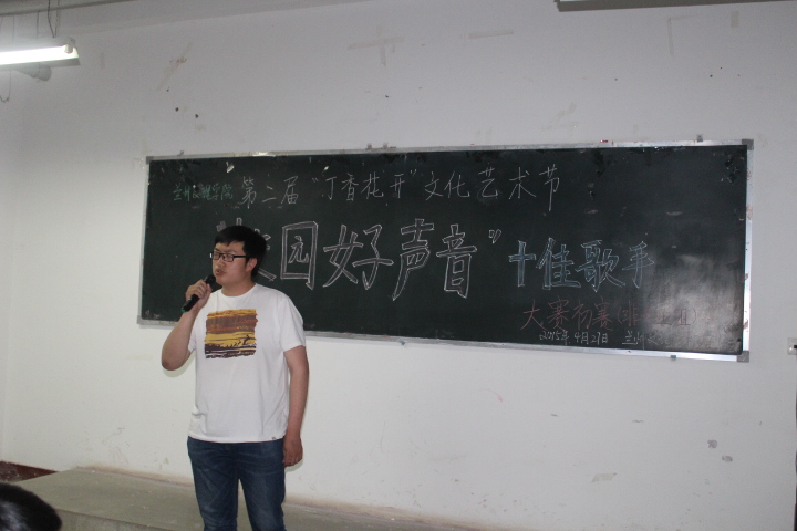 4月27日,兰州文理第二届“丁香花开”文化艺术节“校园好声音”十佳歌手初赛在大学生活动中心隆重举行。美术学院环境设计专业学生吴文刚、朱银昊代表学院参加比赛,学院组织拉拉队四十多名同学参加了此次活动。