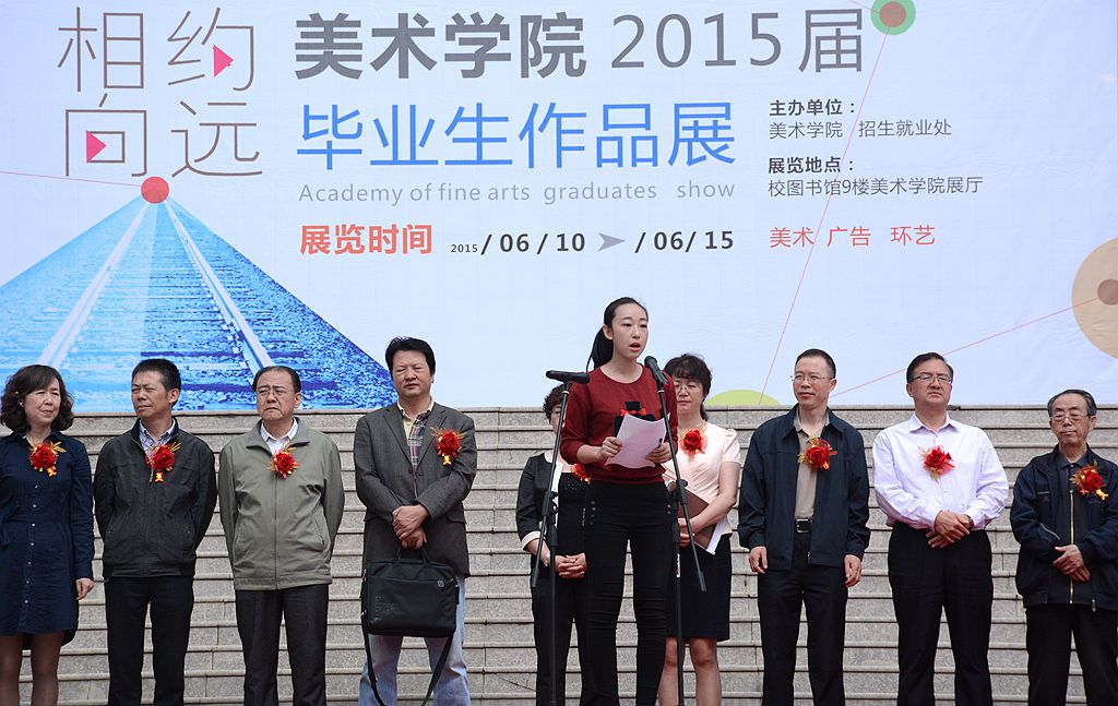 开幕式上,美术学院院长吴晓玲教授致开幕词并预祝本次展览圆满成功,美术学院2015届毕业生代表王莹同学以及在校生代表2014级环艺2班的张明曦同学相继发言。展览在“相约.向远”的主题中拉开帷幕,随着新葡萄8883官网amg校长王建华教授宣布作品展开幕的一刻,大家一起品味新葡萄官网师生为大家呈现的视觉大餐。本次展览汇集了美术学院环境艺术设计、广告设计与制作、美术三个专业,共200余名毕业生的中国画、油画、漆画、室内设计、景观设计、海报设计、VI设计、包装设计、装饰品设计等200余件作品。内容广泛、形式多样,它们虽非尽善尽美,但每幅作品都是同学们在三年里积极思考、勤奋创作的成果,更是学院教学理念和办学水平的集中体现。