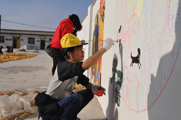 根据学校关于“精准扶贫精准脱贫”文件精神,美术学院充分发挥专业优势相应学校的号召,在学校双联办及驻村干部的支持下,对古浪县直滩乡展开特色化的帮扶活动。 2015年10月15日由辅导员匡扶老师以及21名学生组成的社会实践小分队赴古浪县直滩乡进行为期八天的墙绘活动,活动紧紧围绕“精准扶贫”文化艺术进农村的主题,依托自身专业优势,通过文化墙绘的形式,深入乡村开展了以文化艺术进农村、政策宣传为内容的美化乡村帮扶活动。