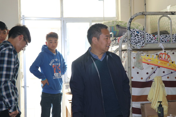 王克太副校长走访了美术学院2014级环境设计4号楼802、803、814等宿舍,进入学生宿舍查看学生宿舍的卫生、安全以及居住环境,同时与学生亲切交谈,了解学生的学习、生活现状,同时就我校宿舍管理方面的问题征求学生的意见。王副校长就学生管理方面提出了几点要求:一是学生宿舍的走访和检查工作要常态化,了解学生的生活现状及时的反馈和处理学生提出的合理化的诉求和建议。二是班主任和辅导员老师要及时的和学生沟通,了解学生的思想动态,从学生的心理层面了解学生、关爱学生。三是美术学院的学生在提高专业素养的同时加强自律意识,在各个方面要严格要求自己,向合格的大学生的标准靠拢。