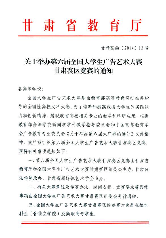 关于组织师生积极参加第六届大学生广告艺术节的通知