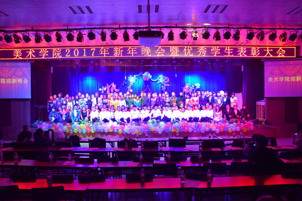 2016年12月16日晚19:00,美术学院在翠文厅举办2017年迎新晚会暨优秀学生表彰大会。美术学院党总支书记贾志明、美术学院院长吴晓玲、副院长仇宇、系主任、学工办辅导员、2016级新生班主任、全体教职工以及美术学院全体学生参加了此次活动。 本次晚会以“执梦起航”为主题,晚会以一曲《欢乐马栏山》舞蹈拉开了帷幕,劲爆的音乐,欢快的舞蹈,使开场气氛分外活跃。随后院长吴晓玲致辞,对2016年度取得优异成绩的学生表示祝贺,同时发表新年贺词预祝本次晚会取得圆满成功。 晚会表演形式多样异彩纷呈,两个小品穿越时空,把历史人物与故事相结合,演员表演生动有趣,使节目幽默风趣,博得了全场观众的阵阵掌声;新疆舞蹈《欢乐的跳吧》把新疆异域风情表现的淋漓尽致,漂亮的姑娘,帅气的小伙,欢快的舞姿,让人眼前一亮。一首藏族歌曲民族味十足,仿佛回到了草原,让人流连忘返。还有那劲爆十足的现代舞,把多种艺术元素集于一体,充分展现了当代大学生的创新与活力。不同的歌曲,不同的风格,都赢得了老师和同学们掌声。 整场晚会充分展示了美术学院学生的艺术风采和精神活力,不仅给大家展示了一场视觉盛宴,同时也给学生们提供了一个展现自我的平台,增强了学院师生的凝聚力,青春在这里起航,梦想在这里起飞,为学院续写和谐新篇章增添了新的助力点。 (撰稿:唐艳丽 摄影:李奉祥) |