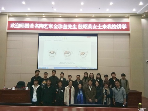 2018年10月19日上午,美术学院邀请韩国著名陶艺家金珍奎先生、殷昭英女士,在南校区综合楼学术报告厅举行学术讲座。报告由美术学院副院长仇宇主持,荣梅及学院部分教师、相关专业学生共200多人参加了活动。