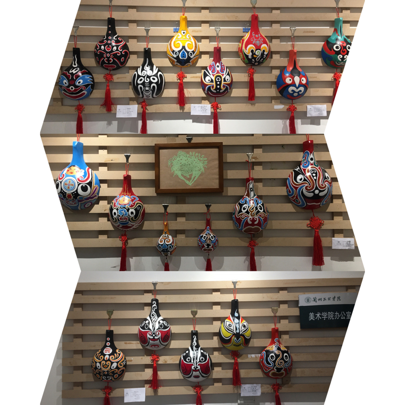在此次交流展中,共展出以甘肃民间美术元素的作品90余幅,学生作品以甘肃的剪纸艺术为元素,以民间祝福、吉祥图案、龙凤图腾为主要题材,创作出一幅幅精美的剪纸作品;同时通过剪纸的形式把皮影、彩陶、戏曲脸谱、经典工笔画局部元素作为创作题材,丰富了剪纸艺术的素材和表现形式。在综合能力运用方面,学生以马勺脸谱、戏曲脸谱、面具等元素为题材,创作出形式多样的文创产品。本次展览作品样式丰富多样,令人耳目一新。