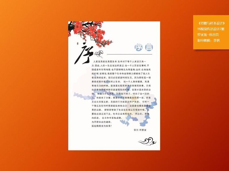 该展览是对此次72课时所做课程项目练习的一次教学成果汇报,展览呈现了该班级三十名同学的部分书籍装帧的设计作品。该课程要求学生的作品必须为原创设计,创意新颖,构思合理。课程主讲教师李艳老师,鼓励大家在设计的过程中摸索更新颖的方法,并且针对每个同学遇到的问题全程进行了有针对性的一对一辅导。通过此次展览,同学们了解了书籍与样本设计从构思、创作、到后期的制作、布展的全过程,感受颇深,为今后的实习和工作打下了坚实的基础。