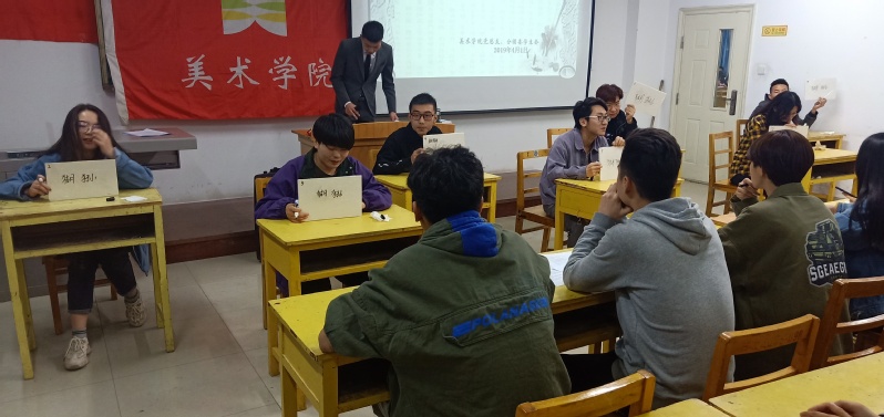 惯,提高学生的文化素养,美术学院根据校团委“第六届礼敬中华优秀传统文化--大学生文化艺术节”的活动安排,如期举行系列活动。201941日晚,在1-504教室举行系列活动之一汉字听写大赛,2018级全体同学和学生党支部代表参加了此次活动。
