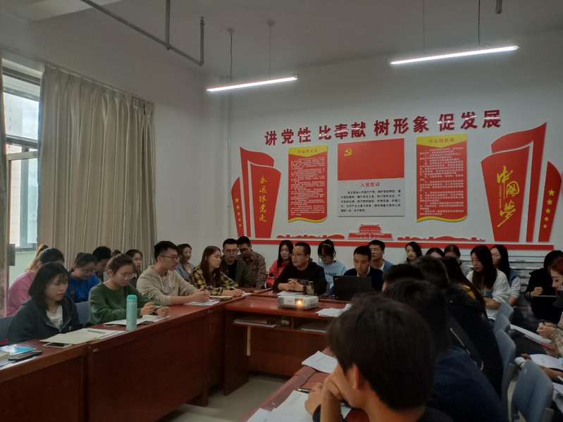 随后,祁敏轩老师就具体学习任务与工作做了具体安排,包括下载学习原文件,定期开展学习交流会;十月开展纪念“中华人民共和国建国70周年”主题教育活动;十一月开展“不忘初心,牢记使命”主题教育实施过程反思会;定期召开“三会一课”;学院分党校按时讲授党课等。