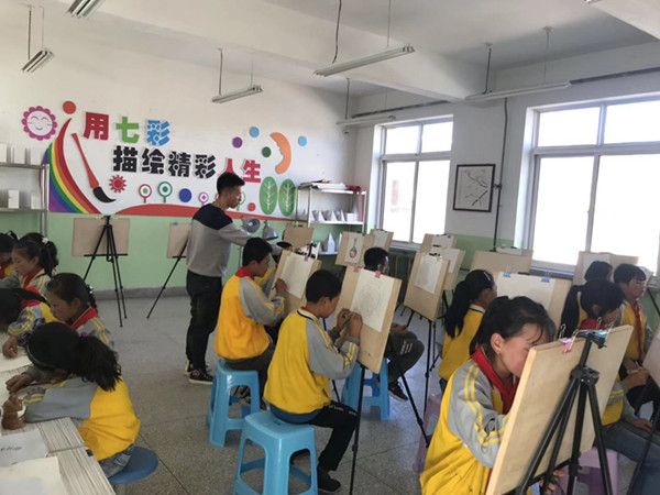 2019年9月9日, 17级美术班学生党员柴瀚斌、乔永梅,入党积极分子李孝芬三位同学响应学校号召,离开熟悉的校园,代表学院远赴岷县贫困地区开启了为期一个多月的支教工作。