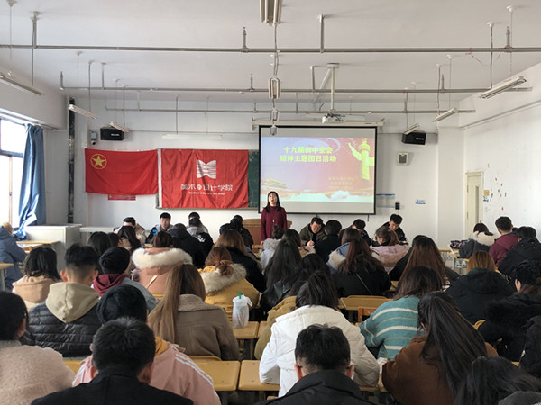 为深入学习贯彻党的十九届四中全会精神,引导广大共青团员自觉将思想和行动统一到全会精神上来,推动全会精神入脑入心,新葡萄8883官网amg分团委于2019年12月11日中午在1-504教室组织开展学习贯彻十九届四中全会精神主题团日活动,分团委负责人、全院学生干部共100余人参加了活动,活动由分团委书记唐艳丽老师主持。