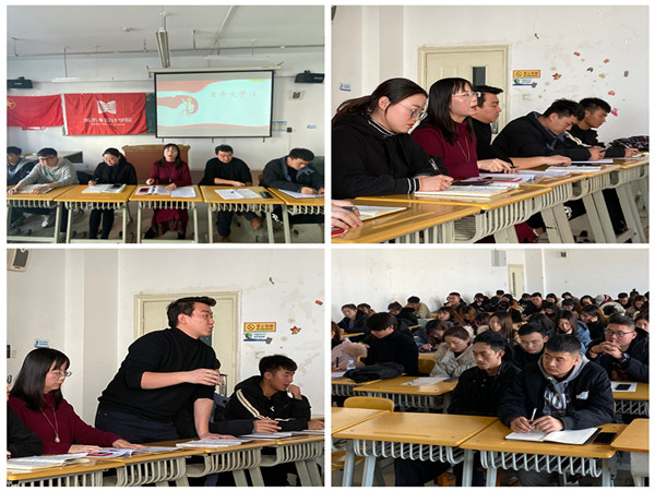 为进一步丰富新葡萄官网学生的思政教育形式,增强广大团员青年的政治思想观念,充分发挥共青团组织团结教育青年的作用,12月16日中午,新葡萄8883官网amg分团委在1-504教室开展“青年大学习”主题教育活动,团学办主任唐艳丽、辅导员郭子弘、李晶晶及全院学生干部参加活动。