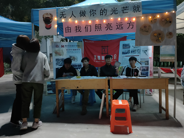 活动中,奕鸣美术协会主要负责人孙继龙、孙祺进行现场指导。宋洪宇、刘玉燕、裴慧慧、程永志等几位部长宣传并讲解协会的专业性及种类,其余部员负责登记信息。王老师强调,作为协会成员要立足小目标,提高认识、担起责任,用一颗赤诚之心,积极服务社会、奉献社会;大要迅速行动起来,立志把艺术传递到校园的每个角落;志存高远,树立健康、青春、文明的艺术家形象,以优秀的创作展现青春风采。