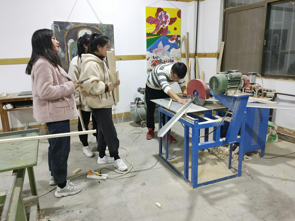 11月11日至12月2日,奕鸣美术协会在音乐楼606教室进行综合材料装饰画教学,协会负责人孙继龙、孙祺,2018级视觉传达设计丁涛,团支部书记融花,油画部部长尕让交,漫画部部长宋洪宇,为新成员进行系统的讲解和指导。