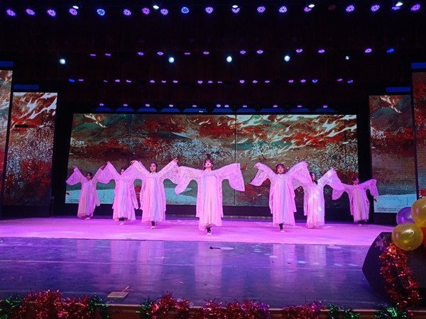 2019年12月25日晚,新葡萄8883官网amg在实验剧场举办“绘梦起航,艺展辉煌”迎新年晚会。学院党总支书记贾志明、副院长仇宇、李富红、团学办主任唐艳丽、2019级各班班主任、辅导员以及全体学生参加了活动,校团委副书记安婧作为特邀嘉宾观看了演出。
