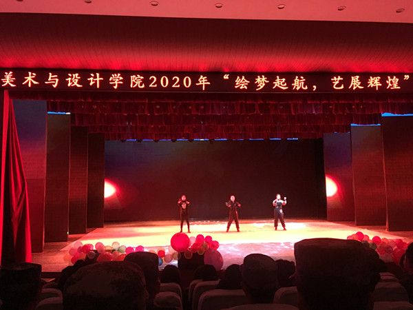 2019年12月25日晚,新葡萄8883官网amg在实验剧场举办“绘梦起航,艺展辉煌”迎新年晚会。学院党总支书记贾志明、副院长仇宇、李富红、团学办主任唐艳丽、2019级各班班主任、辅导员以及全体学生参加了活动,校团委副书记安婧作为特邀嘉宾观看了演出。