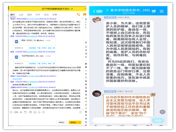 本次学习活动以“牢记嘱托,争做堪当大任的时代青年”为主题,依托班干部、团支书和各班qq群为平台,通过分享各官方渠道获取的优秀示范资源,引导学生充分认识英勇奋战在抗疫一线的青年群体所做的重要贡献。唐艳丽老师还运用“群课堂”系统,深度解析原文,教导大家牢固树立社会主义核心价值观和“青春是用来奋斗的”成长观,努力在为人民服务的历练中经风雨、见世面,强筋骨、长才干,用实际行动唱响新时代主旋律。各班级也积极开展了丰富多彩的活动,使回信重要精神传达至每位学生。