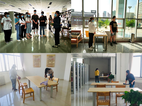 在图书馆管理员的带领下,各小组成员轻声有序进入图书馆二楼,依照既定分工,开展志愿者服务工作。活动内容主要是有序、分类整理图书,为新图书入库腾空间,打扫图书馆公共区域卫生,对相关设备进行擦拭消毒以及规劝不文明行为等。活动过后,大家主动坐在一起交流感受,总结遇到的问题并商议改进措施,共同提高服务质量。