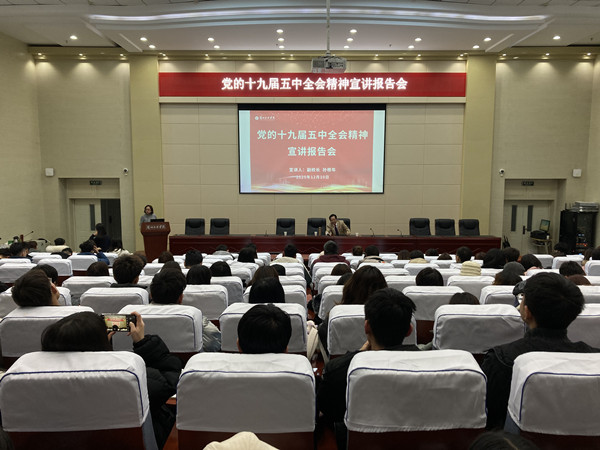 最后,孙根年副校长强调广大青年要立宏图大志,努力学习专业知识,提高专业素养,以自己的专业知识回报社会并实现自己的社会价值。本次宣讲在师生的热烈掌声中圆满结束,同学们表示课后将继续深入学习十九届五中全会精神,在全面建设小康社会的崭新蓝图中,砥砺品质、增长本领,才能在广阔的舞台上施展才华报效祖国。