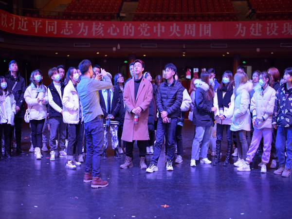 2020年12月12日晚上7点30分,“铸牢中华民族共同体意识”——西北民族大学2021届本科毕业生教学成果展示暨供需推介会于西北民族大学大礼堂隆重举行,我校新葡萄8883官网amg副院长仇宇观看了此次演出,缪伟老师受邀担任此次活动的灯光设计工作,演出期间缪老师带领戏剧影视美术设计专业同学开展了现场观摩教学。