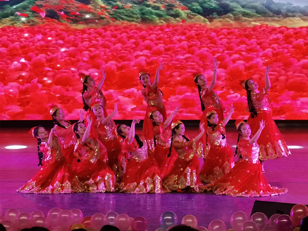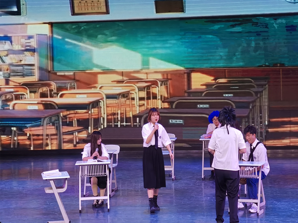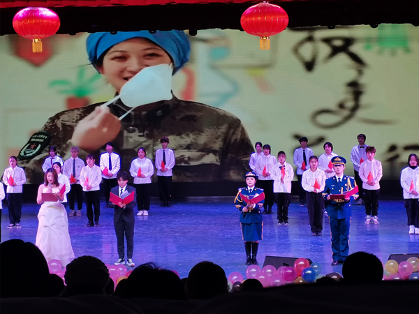 晚会由戏剧影视班同学表演的《哪咤》拉开序幕,魅惑的灯光和令人振奋的音乐为晚会的进行营造了热烈的氛围。二人合唱曲目《男孩》得到了同学们的欢呼和掌声。诗朗诵《致敬逆行》同学们饱含深情地歌颂着抗击新冠疫情中不顾自身安危奋斗在一线的白衣天使。小品《上学那些事》让观众感受到同学们出神入化的演技,令观众捧腹大笑。每个班拿出的节目都精彩至极,场下观众掌声不断。