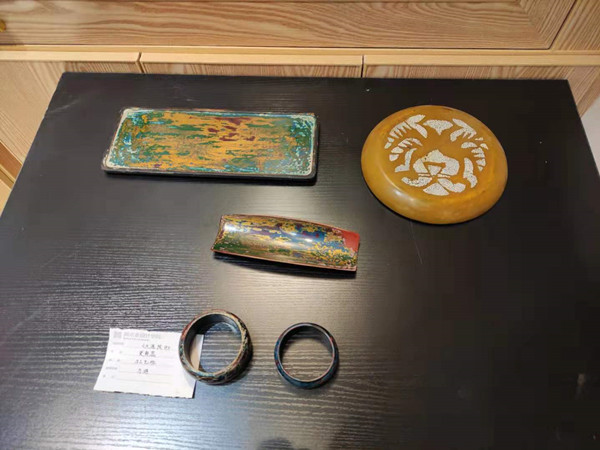 此次作业展共展出六十多件作品,种类丰富,有茶则套件、笔筒、手镯、盘子、茶杯等大漆日用品。展出的作品材质上采用了天然大漆、螺钿及蛋壳,胎体除了传统的木胎外,还有瓷胎。同学们的作品采用彩绘、镶嵌等传统漆艺装饰手法,退光见古朴,推光见莹亮,泽漆揩光则见细腻,手感温润细腻,呈现出深沉典重的色彩基调和静穆优雅的审美趣味。