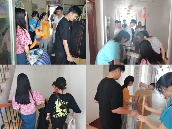 为响应《关于在“我为师生办实事”实践活动中深入开展岗位建功和志愿服务活动的通知》,推动新葡萄官网“我为师生办实事”实践活动深入开展,6月29日下午,美术与设计学院学生第一、第二党支部组成学生党员志愿小分队,进学生宿舍、专业课教室协助毕业生进行宿舍行李搬运、卫生清理工作。