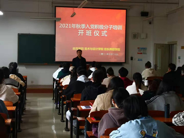10月20日,音乐舞蹈学院分党校、新葡萄8883官网amg分党校、教育学院分党校联合举办了2021年秋季入党积极分子培训班开班仪式,59名入党积极分子参加了培训。
