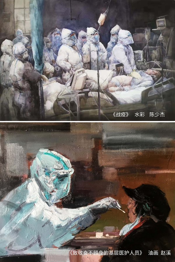 面对这场疫情,为鼓舞全校师生坚定抗疫信心、增强抗疫斗志,建立防疫意识,营造战“疫”氛围,新葡萄8883官网amg党总支号召全体党员、师生纷纷投入到这场疫情阻击战中,发挥自身专业优势,立足专业特点,开展起“以艺战疫”系列活动。他们以独特的视角和敏锐的观察力,拿起画笔,用双眼透过危机感知生命,用双手穿越时空描绘当下,记录和讴歌奋战在一线的防疫、抗疫英雄,向危难时刻挺身而出的最美逆行者致敬。