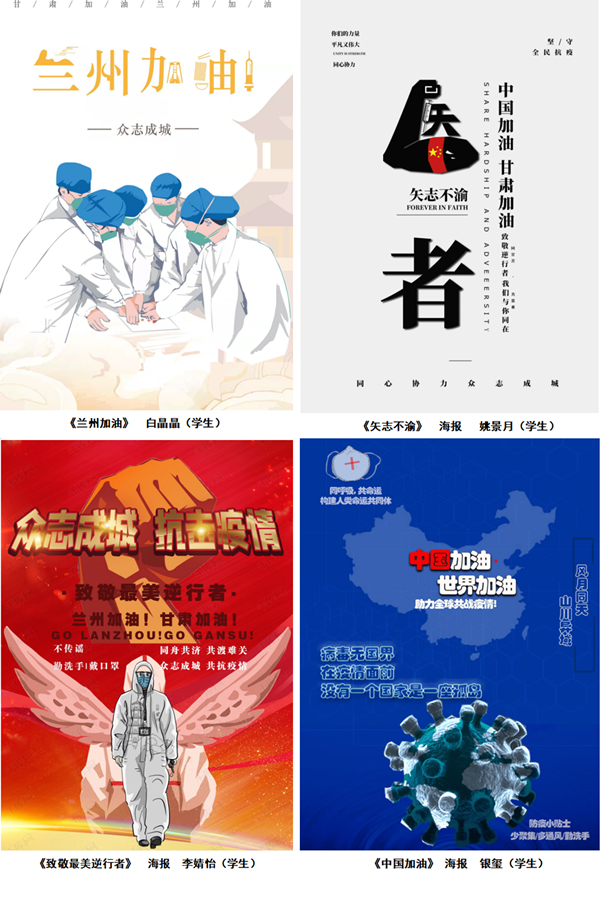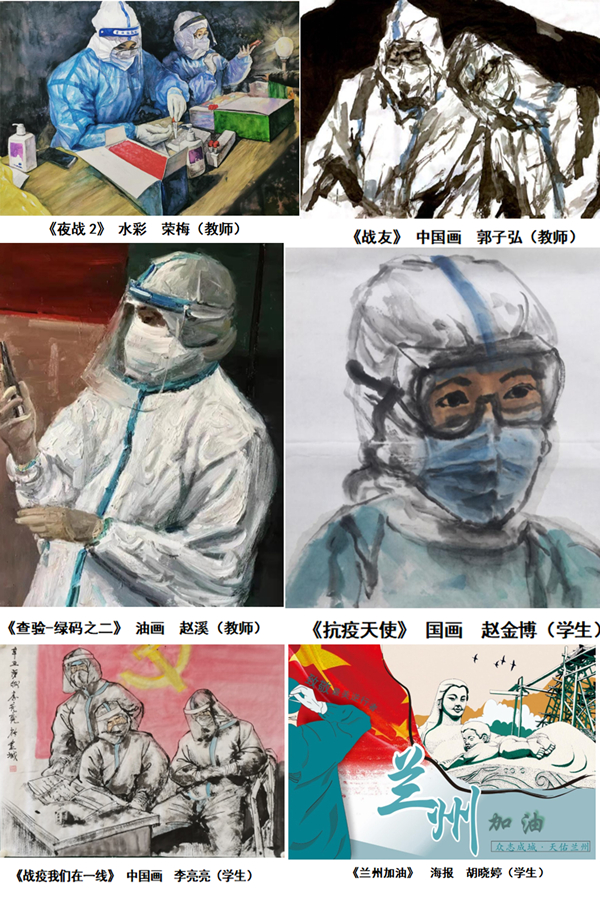 近期,学院师生们纷纷结合专业特长,或重彩描绘、或展卷设计、或快门捕捉,持续创作出了涵盖油画、国画以及海报招贴等数十幅优秀作品。这些作品以讴歌、赞美抗疫一线的动人瞬间、感人故事为内容,立足甘肃地域文化特色,生动勾勒出共克时艰的同胞情谊和百折不挠的精神意志