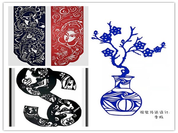 剪纸的基本练习以非对称图案“喜气洋洋”、左右对称图案“有福同享”、六折团花图案“富贵清廉”为主题,让学生熟悉剪纸的基本技法及其基本规律。在临摹甘肃剪纸名家作品的过程中,进一步熟悉剪纸的构图、造型技巧,体验不同题材剪纸语言的特点。