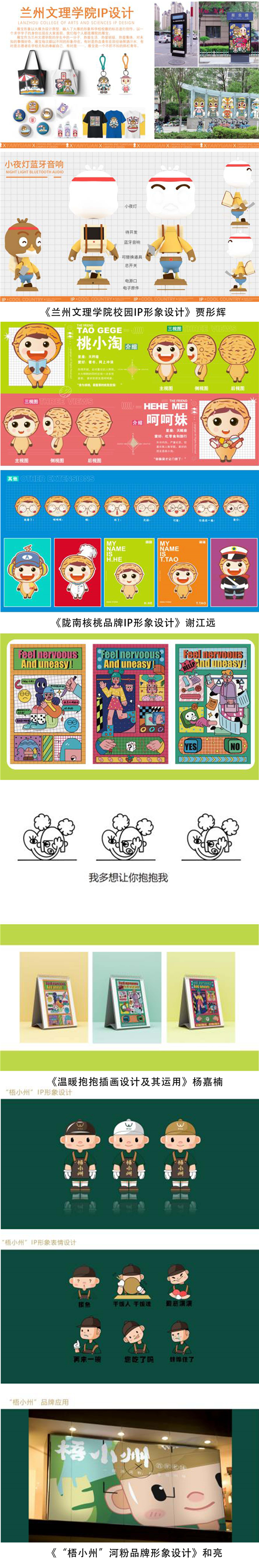 本次作品展在樊华老师的指导下,同学们经过一个月的精心创作共展出了49件设计作品实训内容结合即将开展的毕业设计,从“甘肃地域文化”、“当今社会热点及现象”、“非物质文化遗产”等方向进行选题,设计的内容包括:品牌标识设计、IP形象设计、插画、包装设计以及相关衍生品设计,涵盖了同学们大学所学习的专业知识,考查了专业综合能力。