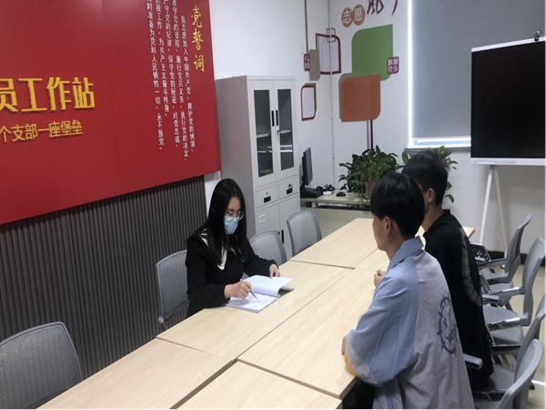 活动中以一对一、面对面双向互动对话为主,交流学生当下生活、学习、作风建设等各方面的思想情况。过程中,辅导员分别指出了同学们显现出的不足,提醒了今后努力方向和注意事项,并要求务必做到坚持党的理论学习,端正入党动机。