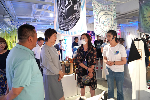 甘肃省委组织部副部长、省人力资源和社会保障厅党组书记、厅长周丽宁一行领导参观了我校师生成果,在新葡萄8883官网amg视觉传达设计专业负责人樊华老师的介绍下各位领导对新葡萄8883官网amg参展的文创产品及产教融合的双创工作给予高度肯定。