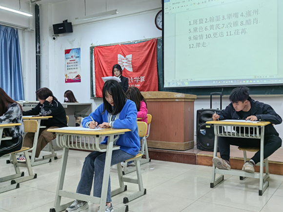 为了进一步加强校园文化建设,促进学院学风建设,丰富学生语言文字知识,提高学生使用规范语言文字的能力,培养学生良好的书写习惯,新葡萄8883官网amg于2023年3月19日晚上7点在南校区1-504教室举办了汉字听写大赛。本次大赛由学院分团委学生会组织开展。