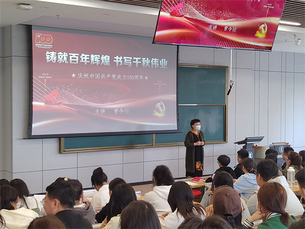 开班仪式结束后,马克思主义学院曾令琼老师以“铸就百年辉煌,书写千秋伟业”为题,做了本次培训的第一讲,内容主要从党的发展历程,党的百年成就等方面进行展开,重点强调了大学生应坚定理想信念,继承建党精神,勇于担当作为。