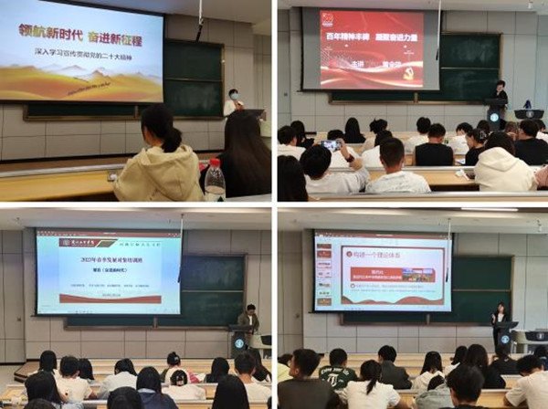 为期10天的培训中,马克思主义学院曾令琼教授、沙莉副教授、蔡静副教授、张吉军副教授分别以“中国共产党的光辉历程”“如何做一个合格的共产党员”“深入学习党的二十大精神”“学党章、知党情、跟党走”为主题开展了专题讲座,经济管理学院组织员马菁阳介绍了党员组织发展和党员教育管理相关知识。经过综合考核,80名党员发展对象均达到培训要求。