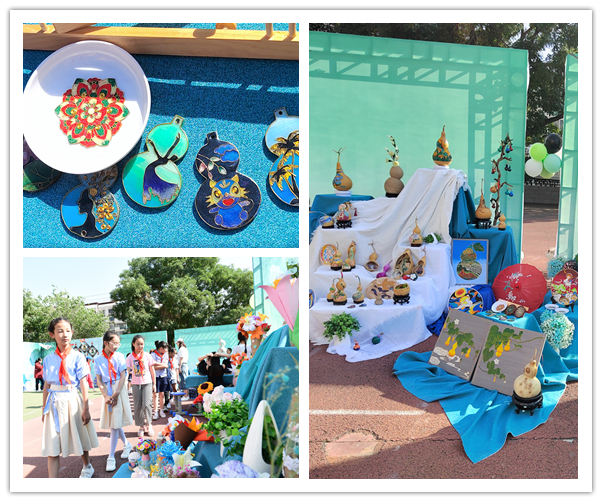 此次成果汇报展精选了2023年上半年剪纸兴趣班和扎染兴趣班50多名同学优秀剪纸、扎染作品100多幅;同时展出的有雁东路小学美术教师们精心打造的“葫芦工坊”产出的掐丝艺术、葫芦绘画、烙画扇面等丰富多样的作品。展览品种丰富、工艺精湛,蕴含了中华优秀传统文化和甘肃地域文化的精神,彰显了甘肃非遗手工艺术的魅力。