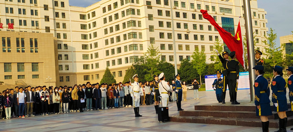 7时整,仪式正式开始,英姿飒爽的国旗护卫队队员们护送国旗进场,在慷慨激昂的《义勇军进行曲》中五星红旗冉冉升起,全场师生行注目礼,齐唱国歌。升旗完毕后,总支书记贾志明作了讲话,号召每位同学都要积极主动投身到学习贯彻习近平新时代中国特色社会主义思想主题教育中来,牢牢把握学思想、强党性、重实践、建新功的总要求,塑造有信念、有梦想、有奋斗、有奉献的人生。之后学生代表21级绘画一班张旋同学发表了主题为“以青春之名赴二十大之约”的演讲。她号召同学们怀抱梦想、脚踏实地,做有理想、敢担当、能吃苦、肯奋斗的新时代好青年,努力成长为堪当重任的时代新人,谱写青春最美华章!