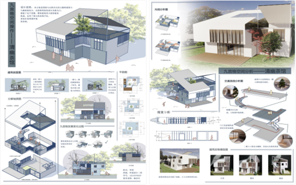 建筑设计基础是环境设计专业基础课教学的核心内容。通过讲述建筑材料、建造方式、建筑形态、建筑和人的关系等方面的入门知识,结合九宫格空间操作的训练方法,培养学生对建筑形式的感受与训练以及对建筑空间的感知与操纵,为后续设计课程的学习打下了良好的基础,同时也为今后真正意义上的建筑设计储备了相应的基础知识和基本技能。