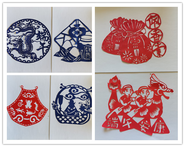 同学们认真学习,制作着一幅幅凝结着美好愿望的端午剪纸作品,栩栩如生的各色粽子、赛龙舟、香囊、五毒肚兜、屈原人物等图案在指尖飞旋,现场气氛热闹非凡。