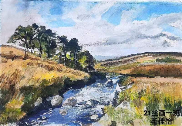 (图片为2021级绘画专业毛佳怡作品《一方沃土,绘绎眼中乡村》---我的家乡白银)