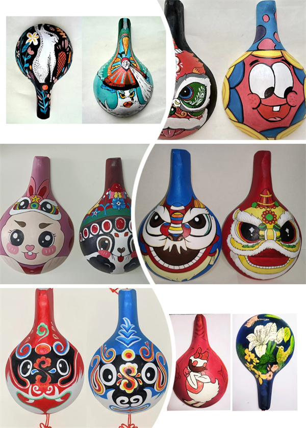 本次课程采用智慧树慕课平台,以线上视频讲授理论,线下项目化实践主题教学为主。此次展览共展出剪纸作品150余幅,作品以甘肃的民间吉祥图案、龙凤图腾为主要题材,通过剪纸的形式把皮影、戏曲脸谱、经典工笔画局部元素作为创作素材,丰富了剪纸艺术的表现形式。木制马勺脸谱150个,民间社火马勺脸谱古朴端庄,现代动漫人物、花卉、风景马勺清新可人,同学们在一方马勺上实践了传统与创新的结合。