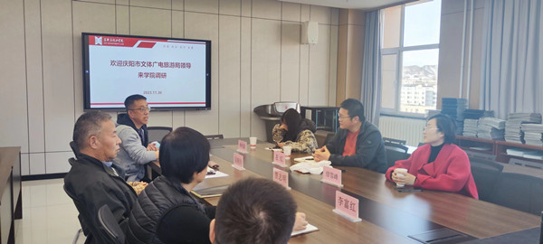11月30日下午,庆阳市文体广电旅游局左红副局长、非遗科科长李天蓝和文化馆副馆长缪雪峰一行来新葡萄官网调研座谈,学院领导和各系主任参加座谈。