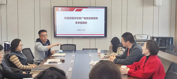11月30日下午,庆阳市文体广电旅游局左红副局长、非遗科科长李天蓝和文化馆副馆长缪雪峰一行来新葡萄官网调研座谈,学院领导和各系主任参加座谈。