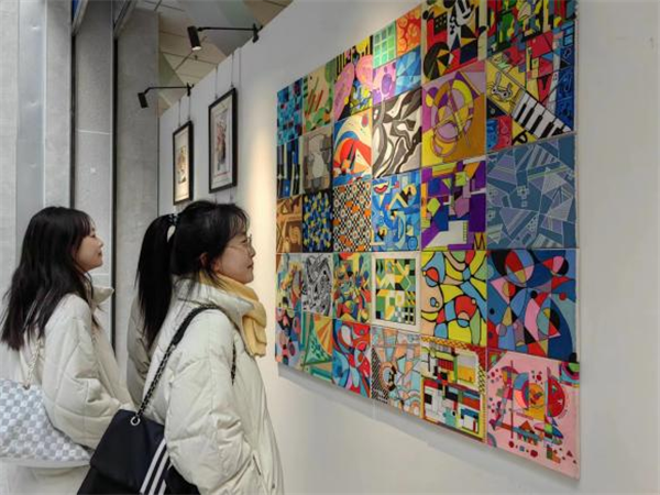 本次展览是我校首批国家级一流本科课程持续建设的阶段性成果,展览共展出视觉传达设计、环境设计、戏剧影视美术设计2023级学生在“二维设计基础”课程中的习作,共计100余件。内容涵盖抽象造形训练、装饰色彩训练、构成形式训练以及视觉肌理的创意表达等。在这些鲜活生动的作品中,充分展现出大一新生初学设计的感悟、理解和思考。“二维设计基础”课程运用敦煌文化、彩陶文化、区域民族民间文化等元素与现代设计理论方法相结合的课题设计思路,体现出课程教学团队在课堂教学中落实传承中华优秀传统文化和服务地方经济文化建设中不断凝练课程特色,开展教学改革的实践探索。