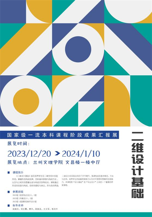 2023年12月20日,新葡萄8883官网amg“二维设计基础”国家级一流本科课程课业展在文昌楼一楼中厅举办。