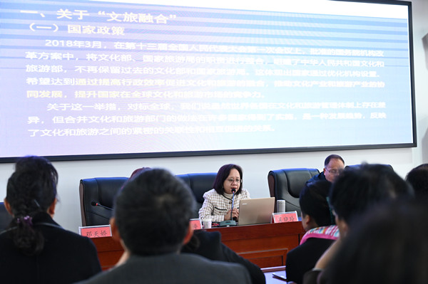 签约仪式上双方分别介绍了学院基本情况和庆阳香包刺绣产业现状,双方围绕共建校地合作、共建实训实践基地、共建创新创业舞台,在服务地方企业、共同培育产业、促进人才培养等方面进行了交流。吴晓玲院长和王永靖局长代表双方签署合作协议。吴晓玲教授为正宁县文体广电和旅游局局机关、文化馆、图书馆、博物馆全体干部职工及全县香包刺绣非遗传承人、文创企业代表作了香包刺绣产业开发讲座,主要讲授了关于文旅融合、校地合作、庆阳香包产业面临的问题、应对策略以及香包产业发展的思考建议等内容。