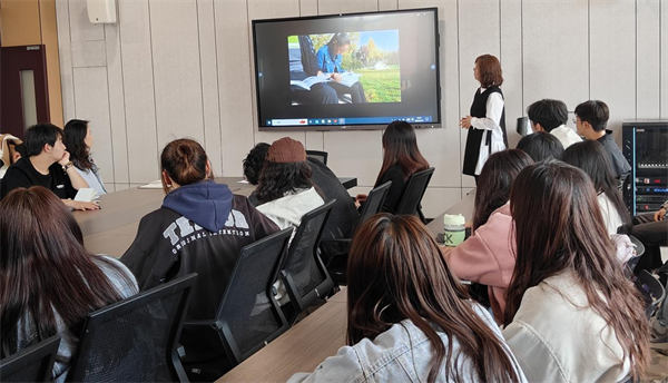 唐老师抛砖引玉让大家观看了两位学生会主席,2013级广告设计与制作专业魏世海、2018级环境设计专业朱大海同学的成长历程短视频,通过直观、生动的方式阐述了美院学生干部成长的路径。
