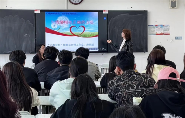 活动中,唐老师指出每个人都会产生情绪,但并非人人都能很好的管理情绪,学会沉淀情绪,做情绪的主人,是每个人成长路上的必修课。针对高校大学生心理健康教育中,由于缺乏情绪管理教育指导而导致大学生中出现的人格、道德、情感、生活、就业等严重影响大学生身心健康和成长等问题,唐老师从积极心理学的角度出发,鼓励同学们以积极的心态,通过觉察情绪、接纳情绪、理解情绪、调节情绪、激发行动五个步骤去实践掌握情绪管理的技巧,做自己情绪管理的主人。