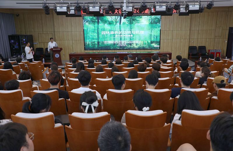 讲座中,李树华教授深入浅出地阐述了园林康养在绿色医学与绿康城市建设中的重要作用,通过丰富的案例和前沿的研究成果,展示了园林康养在改善人们生活环境、促进身心健康方面的巨大潜力。李教授的演讲不仅拓宽了师生的视野,也引发了在场人员对城市可持续发展与绿色医学理念的深入思考。在讲座的互动环节,师生们与李树华教授进行了深入的交流,李教授耐心解答了大家的问题,并分享了自己的见解和心得。讲座结束后,全体参与人员合影留念。