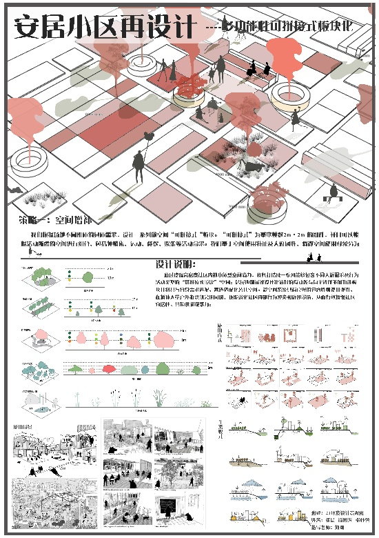 本次课程是同学们对兰州雁滩安居小区内景观空间的深入考察与改造设计成果。通过实地考察,与小区居民、物业管理人员等进行沟通,对小区内的景观空间现状与居民期待有了更加直观和深入的了解,为设计的展开提供了依据。依托整个设计过程,同学们学会了如何将理论知识与实践相结合,不仅提高了自己的专业技能和综合素质,还为未来的职业发展奠定了坚实的基础。